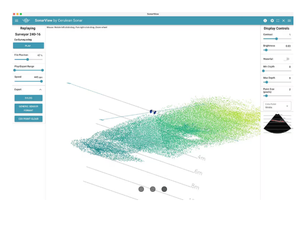 Surveyor includes a built-in IMU. SonarView uses the Surveyor IMU for pitch and roll compensation and combines this with position and heading information from the vehicle to accurately place each depth measurement in its correct geographic location.